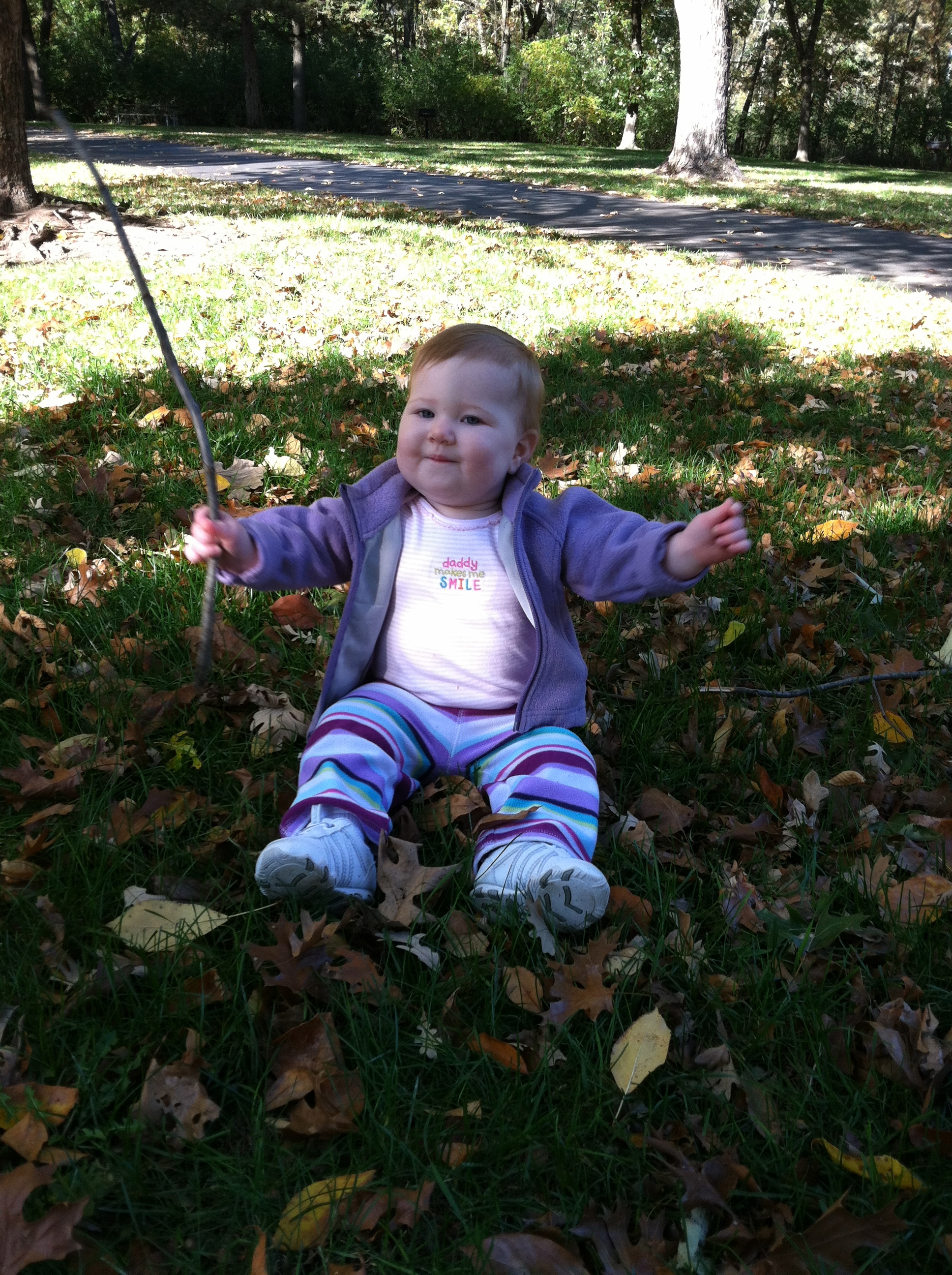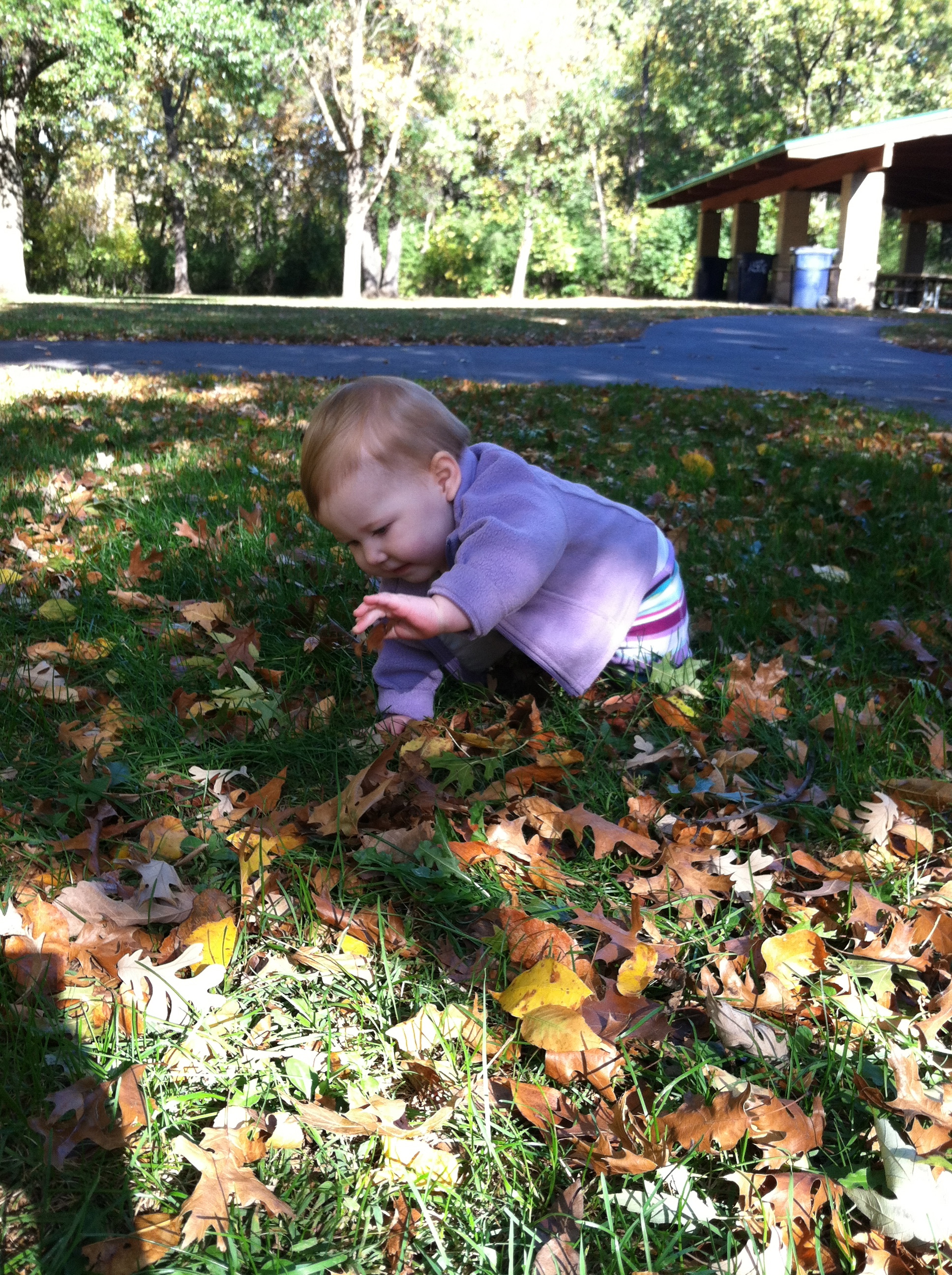 We had a few warm weekend days over the month and were able to enjoy some walks and fun at the park. While at the park, you had so much fun holding my hand, walking around and exploring the leaves and the sticks. You would pick up the sticks, wave them around and crinkle the leaves in your hands. Generally, you were just fascinated by the sounds and feelings they made.