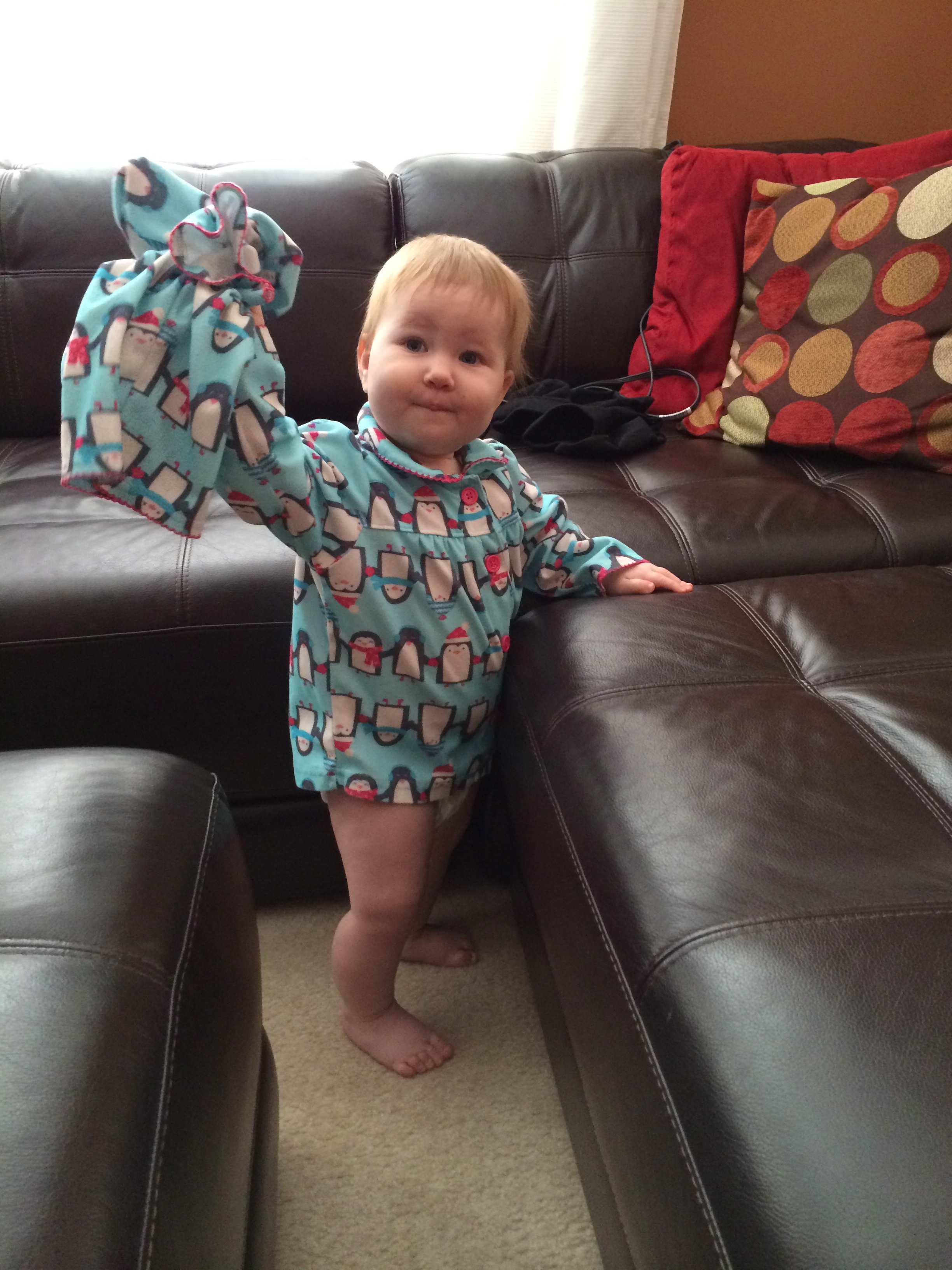 Around 10 ½ months, you added walking to your skill set. You had taken steps here and there but before bed one night you took eight steps in a row and then repeated it again and again and again. Crawling is still your preferred form of mobility, but you walk a little further and a little more every day. It is truly so sweet to see you stagger around with your arms waving in the air and your bare little feet clomping and gripping the floor. I just can’t get enough of it.