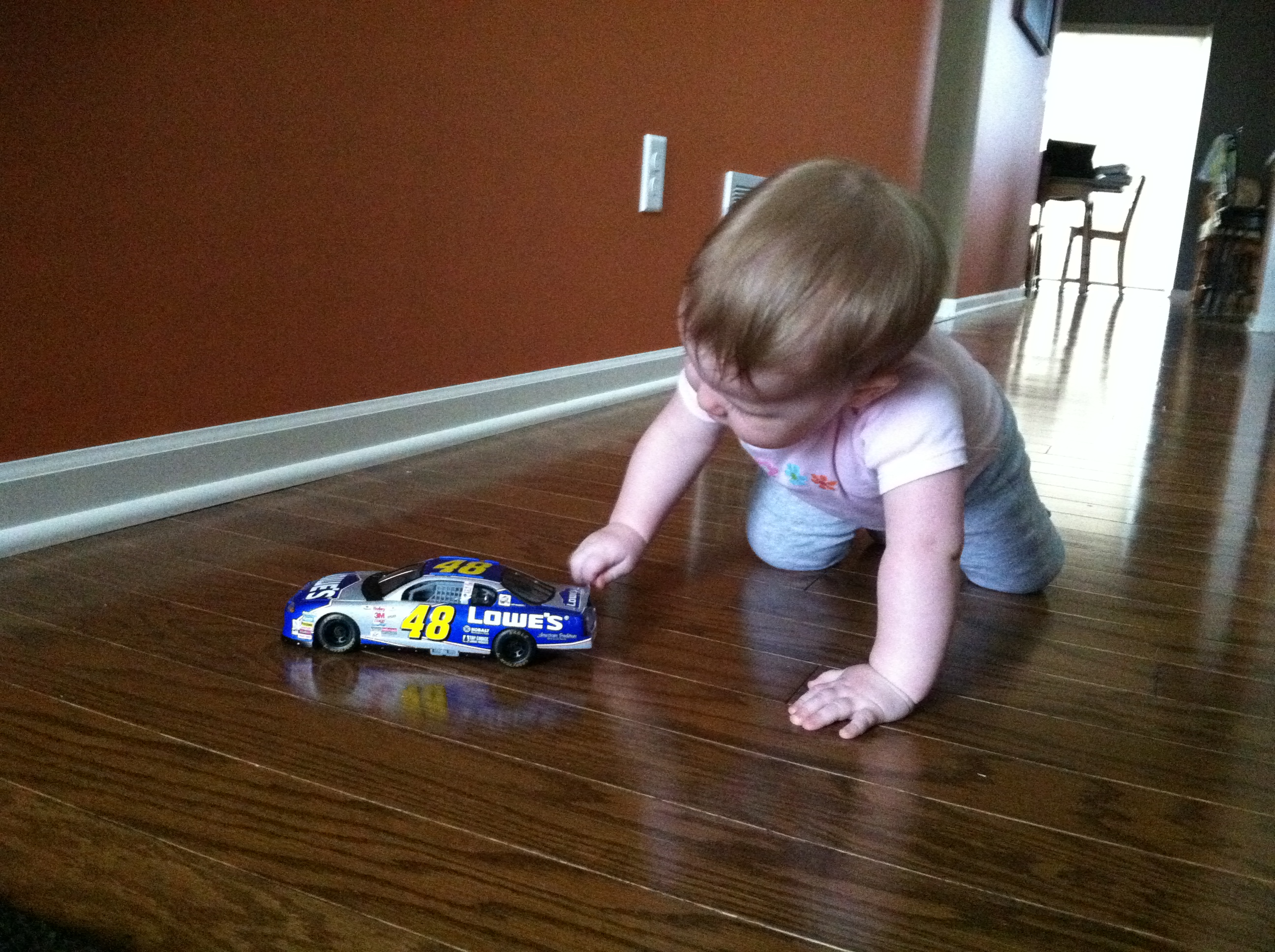 Throughout the month, there have been fewer and fewer occasions that you fall asleep for the night while eating. As bedtime is approaching, we tell you “It is almost ni-night time Lexi.” When we finally do go up to your bed and say “It’s time to go to bed,” you put your head on my chest and just cuddle. Then we’ll lie in the rocking chair and you toss and turn, trying to get comfortable cuddling on my legs, on my chest, next to my head, sideways almost anyway your little body will let you move. Then, you hit a point and fall asleep in some strange position. I absolutely treasure those extra cuddles especially when you instantly cuddle in when we say its bedtime.