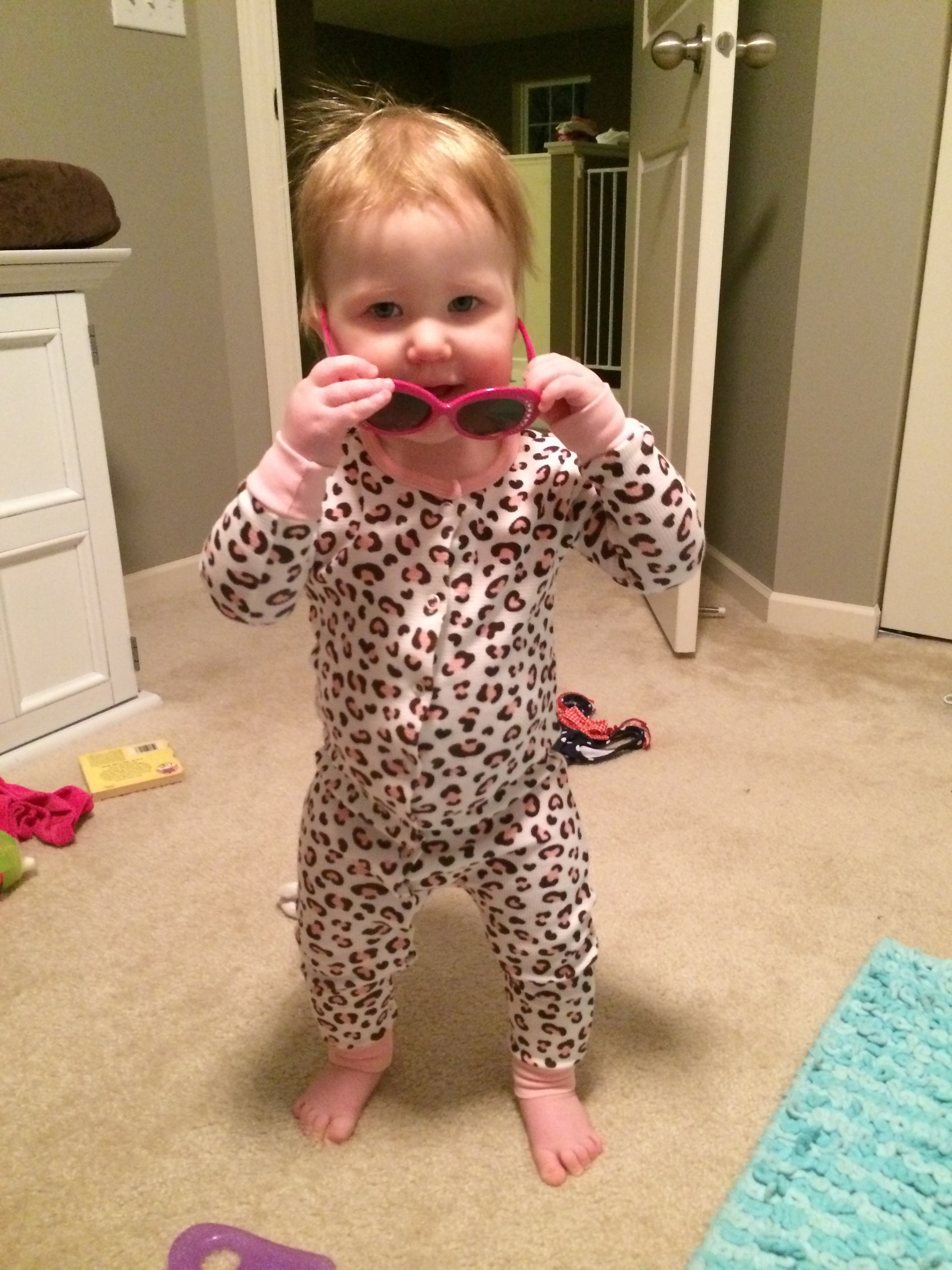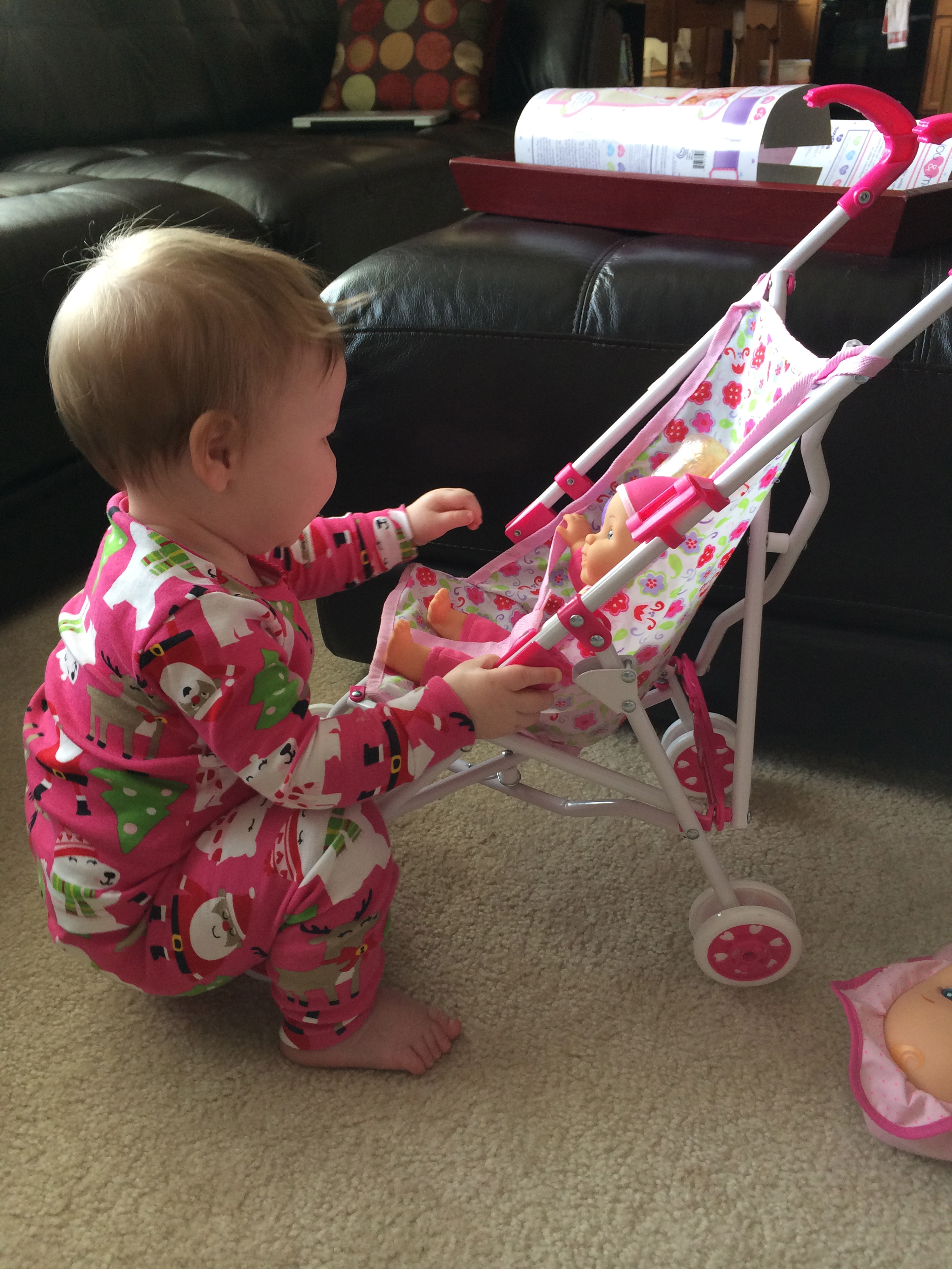 For your birthday you received two baby-dolls, some pretend bottles a stroller and you love to take care of your babies. It is so sweet to watch you put the bottles up to their faces and put them over your shoulder and pat their back. When you take them for ‘walks’ in their stroller, you’ll waddle to the front, squat down and check on them and fuss with them a little bit and then continue your ‘walk’. It’s so adorable to see how caring and nurturing you are!