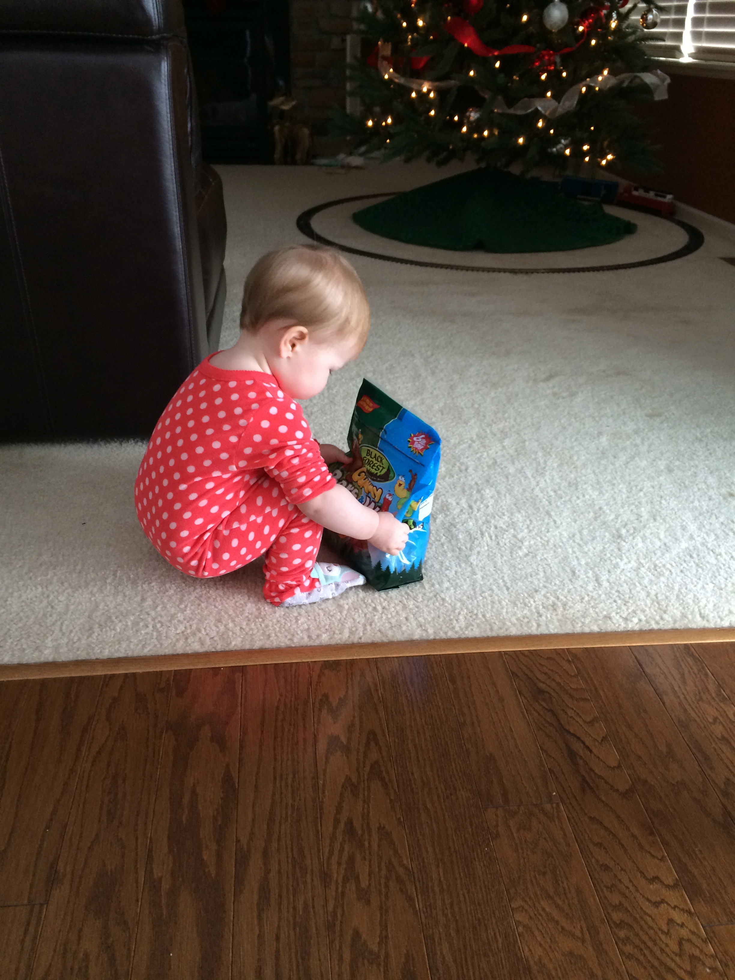 Daddy has done a really great job teaching and enforcing ‘one-touch’ with you. You can touch almost anything one time, but no grabbing or multiple touches. This came in handy with the Christmas decorations up. You touched the tree and a couple of ornaments a few times and then were done with it. Daddy also set-up the Christmas tree train and you LOVED it. Every time you came into the room, you would run and point for it to be turned on. Then, you would proceed to run back and forth as it would circle and giggle and stomp your feet. You were pretty darn cute. And it was fun to see Daddy excited, as you showed interest in his hobby!