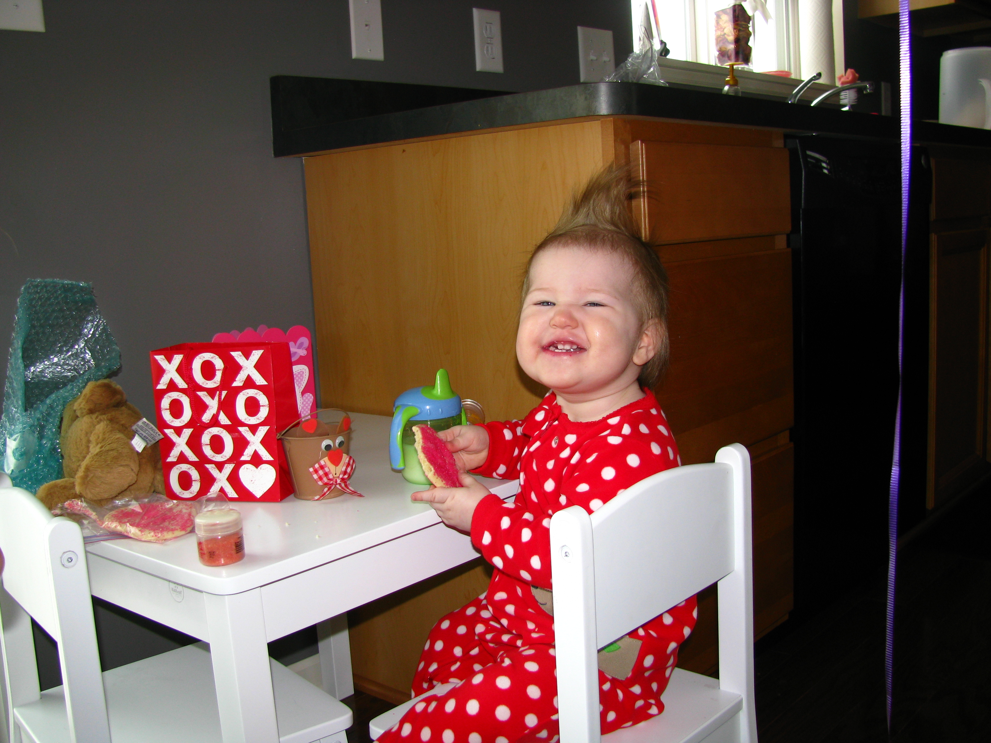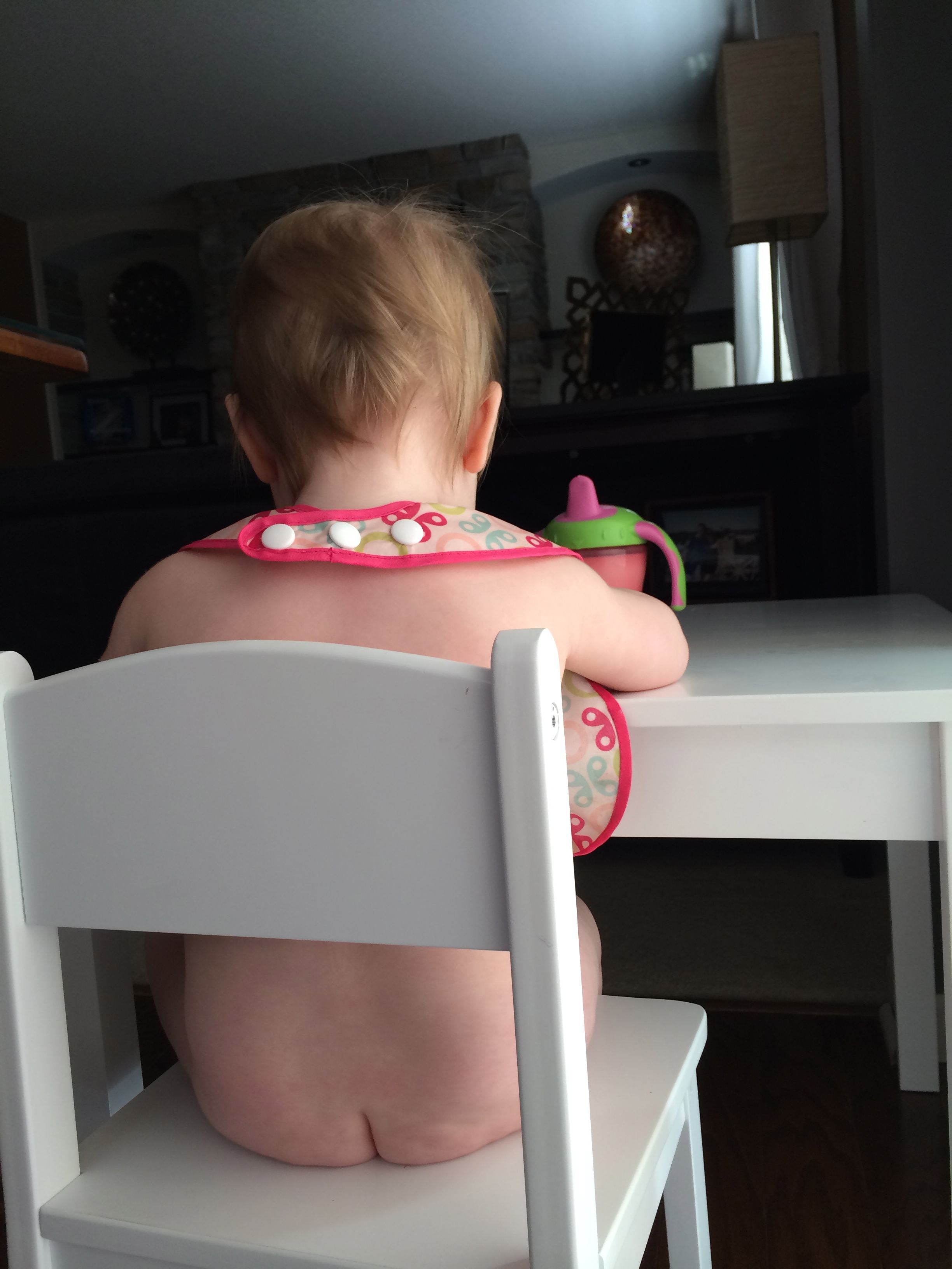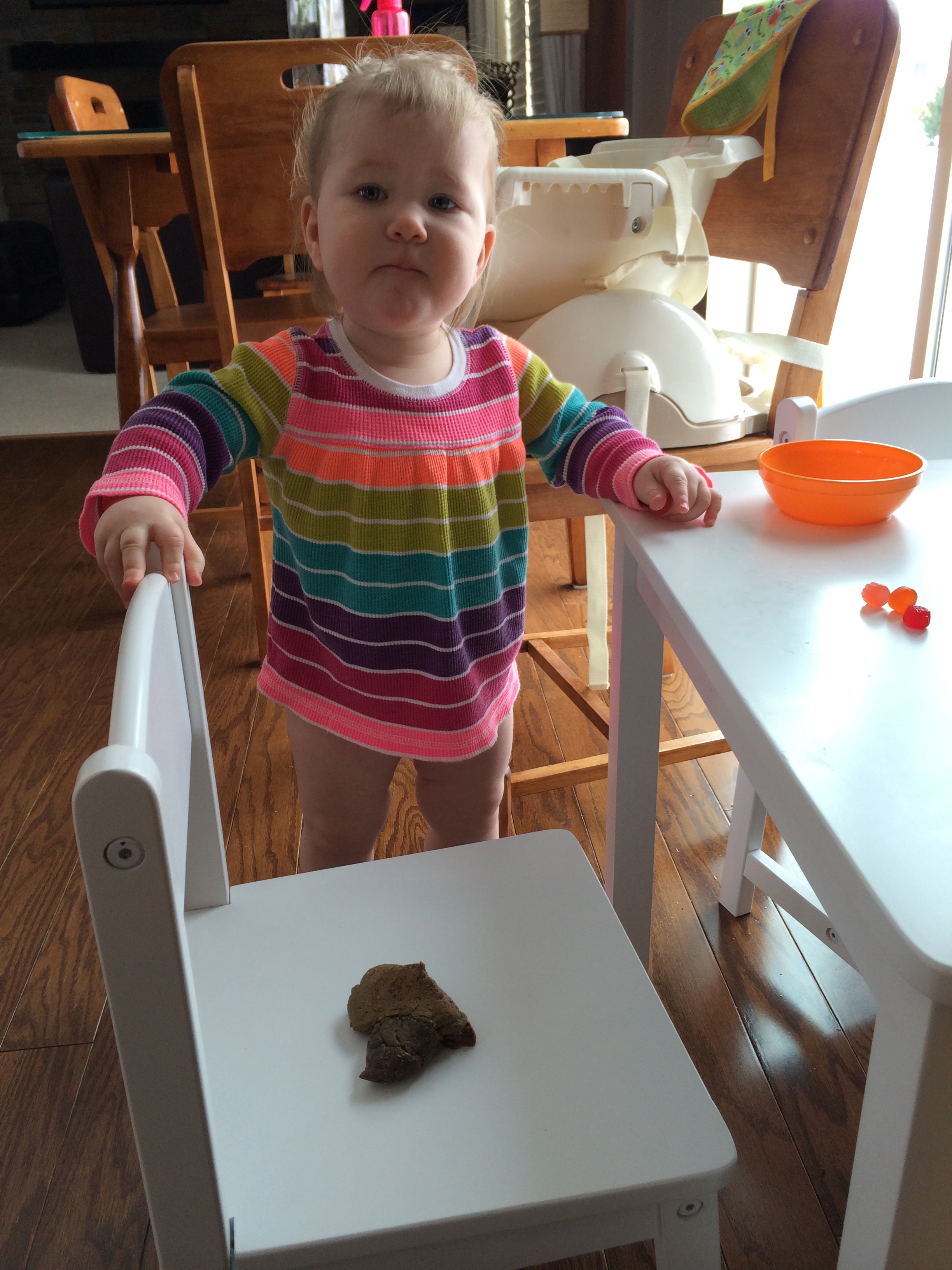 After a successful potty trip, you were enjoying your fruit snack treat while I was unloading the dishwashing and peeked your way and found you squatting on your chair over a big pile of poo! So funny and gross!
