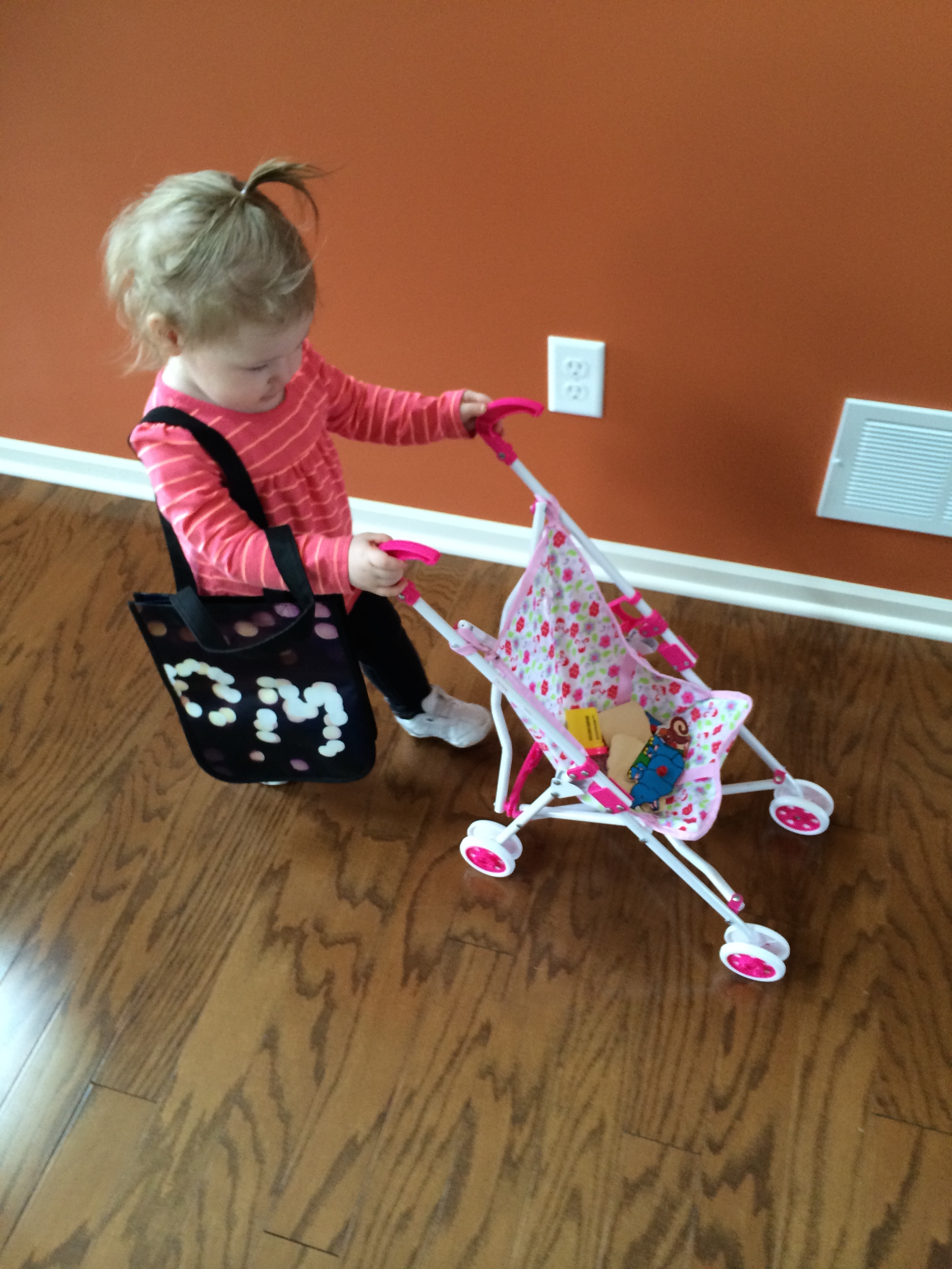 Oh sweet girl, I love to see your nurturing side show through. Currently, you love to push babies (or really any object) in your stroller and insist that they come outside with you so you can take them for a walk. I know feminists may cringe at the thought of this, but I sincerely hope this is a trait you never loose. Male or female, the need to want to care for others isn’t something that everyone has and it is an asset that I believe will take you far in life, whether that it is caring for your own children if you so wish, me and your dad in the later years or life, sticking up for others on the playground or in the workplace. Going the extra mile to help others is always appreciated.