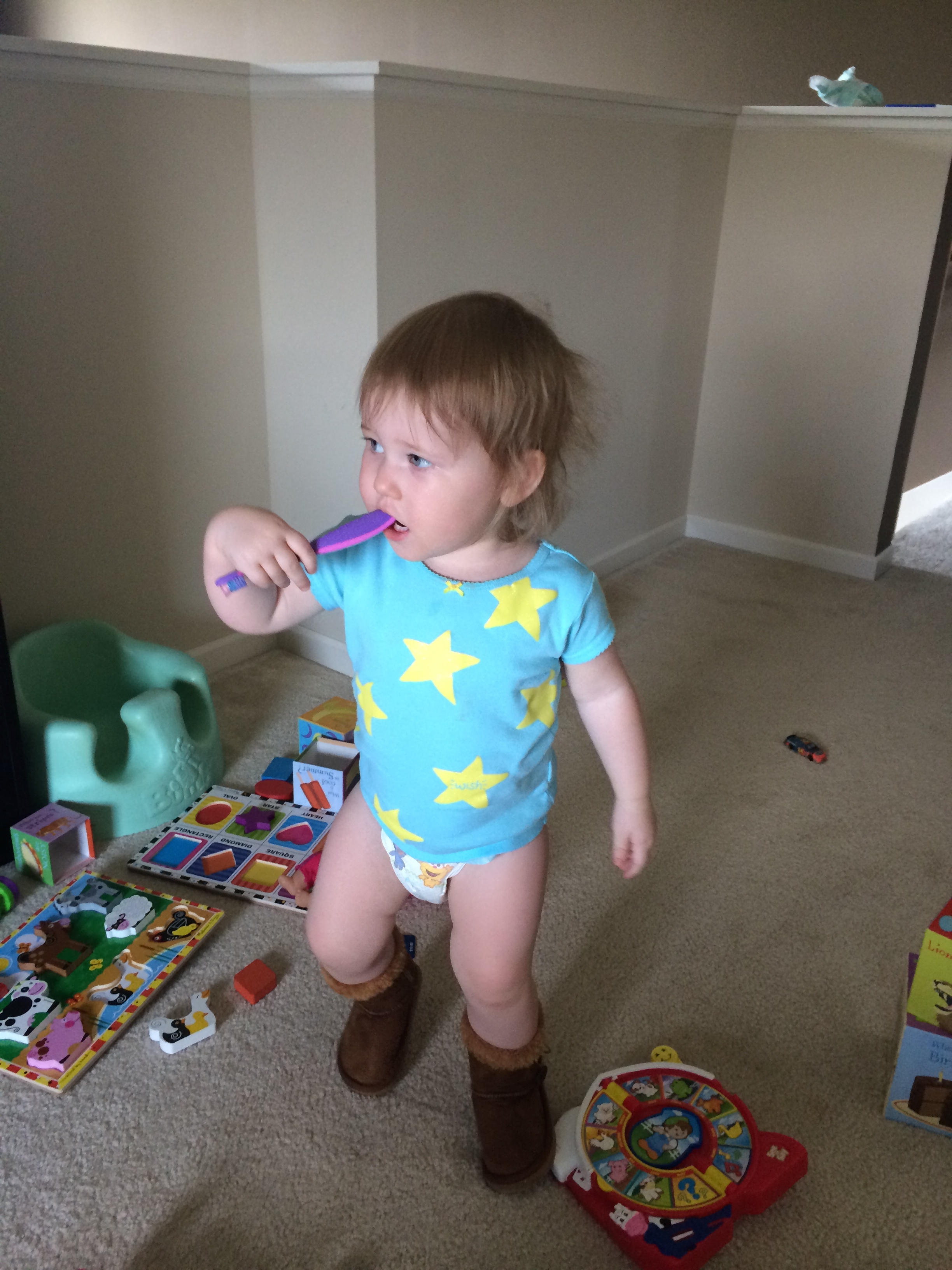 Your hair is getting thicker and longer! Makes your ponies much easier to put in! You’ve also got some curl to it. I’m not sure if it is the length that it is at, but almost everyday, the back part just naturally curls out! There aren’t many things cuter than a little girl with curls, and in my biased opinion, you are not an exception!