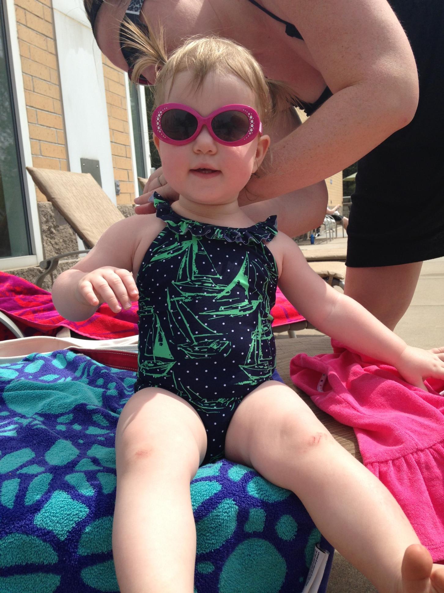 After the busy weekend at Leech Lake over Memorial weekend, I was a little hesitant to take you swimming when Auntie She-She called and asked if we wanted to join her at the outdoor pool at the gym It was a beautiful day and we hadn’t been swimming in awhile so I said sure. Oh my stars alive, did you love it. You were laughing and giggling and loved singing songs (Motor Boat, Wheels on the Bus, and Row Row Row your Boat). You were having so much fun, and kept saying ‘summon’ while the lifeguards were taking a break that we had to go swim inside until the break was over. It is so fun to share your joy over some of the simplest things. And you and that hat, is just too cute. (if I take it off, you ask where it is and demand it to be put back on your head.)