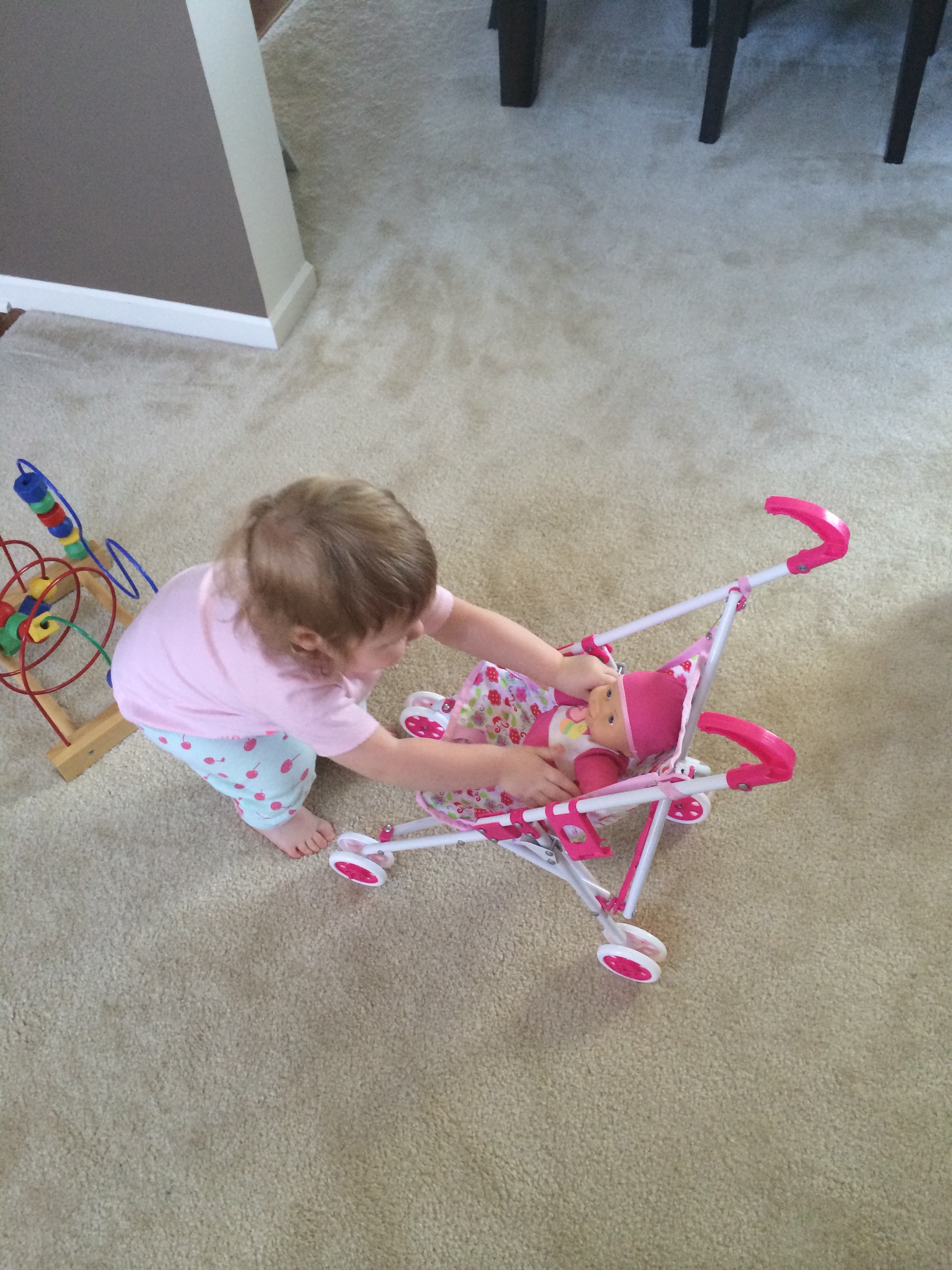 From the moment I found out I was pregnant, the way I watch you play with your dolls has changed from ‘oh that’s so sweet’ to ‘an emotionally gushy, you’re going to be such a good big sister’. I just can’t get enough of watching you take care of your dolls by feeding them, walking them in your stroller or even the way you hold them on your shoulder and sway your hips back in forth trying to comfort them. You’re a natural sweet girl and I hope you love your new brother or sister opposed to being jealous of them.