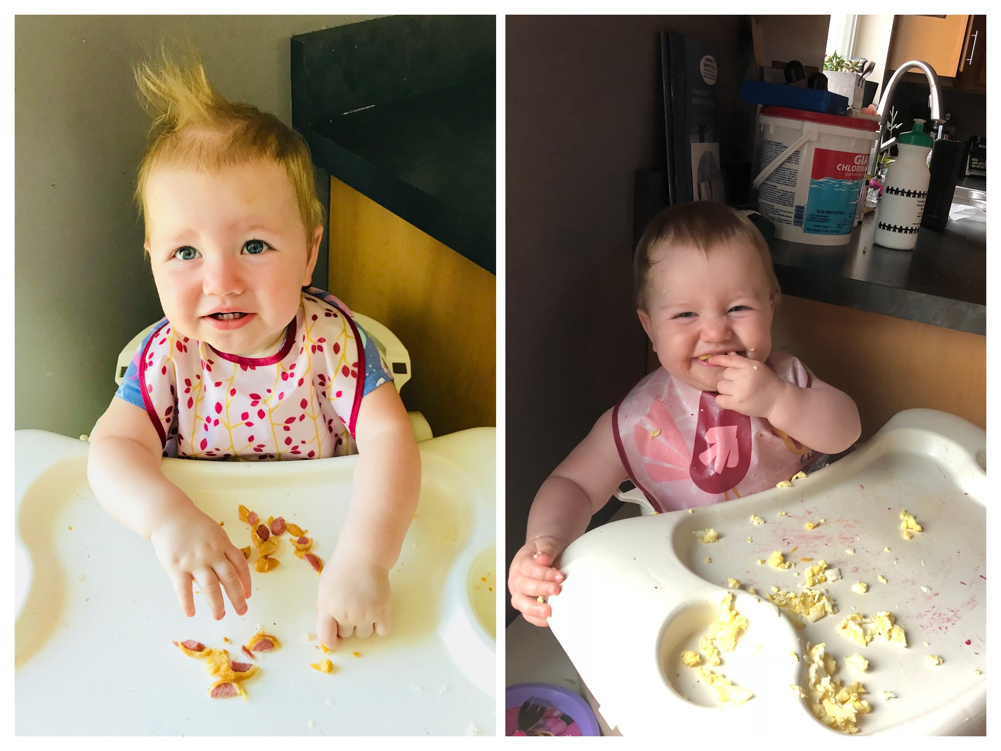 During meals, there is usually a mad scramble to find additional food to feed you. You’ll eat everything I’ve given you and sign more so we dig through the cupboards to find something to fill you up. When you are hungry, watch out! You’ll start saying mumumum, which eventually turns into yells of ‘Aheeeeee’ until we put something in your belly. You’re also always very thirsty. You drink whole milk and water from a sippy and will easily cash an entire cup in one sitting. This month, you’ve also figured out/realized there is a special spot on the tray in your high chair for your cup and will regularly place it there.