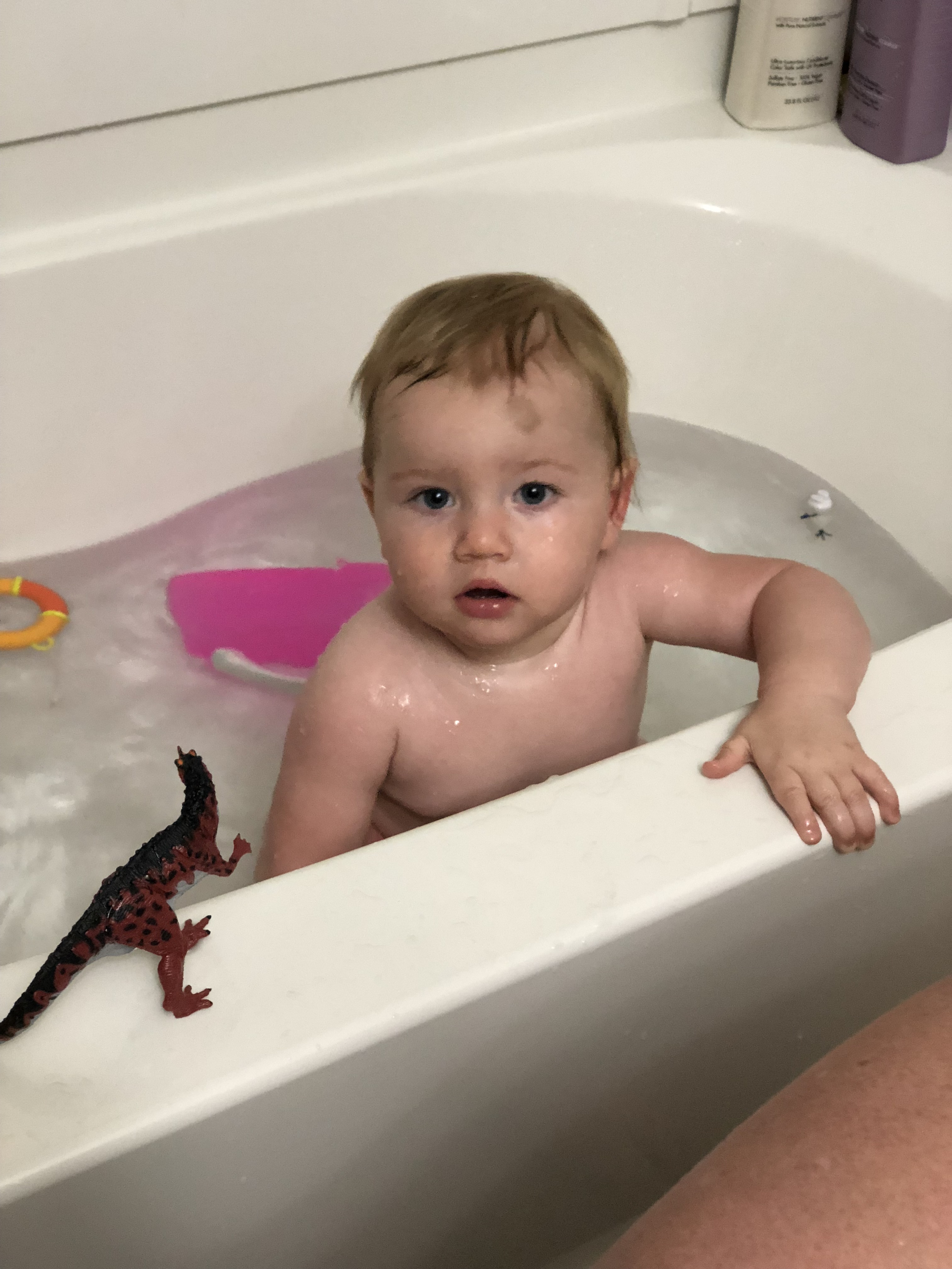 Dislikes: diaper changes, sitting still (even to read books) snuggling (but will do it occasionally now), Toys–you only want to scoot around, wearing a lifejacket,