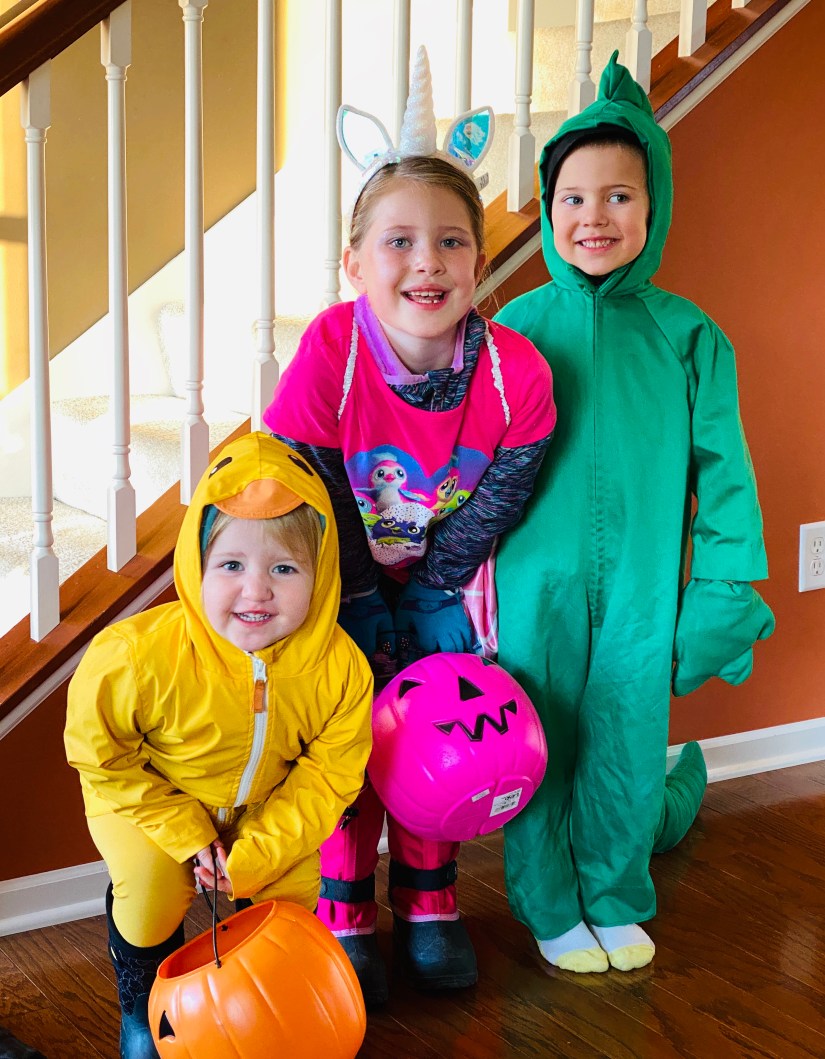 I lobbied incredibly hard (really hard) to have coordinating costumes for you three, and there was zero interest. I threw out three little pigs, grinch, disney characters and idea after idea was rejected. Sigh. I don’t think I will ever win this battle again.
