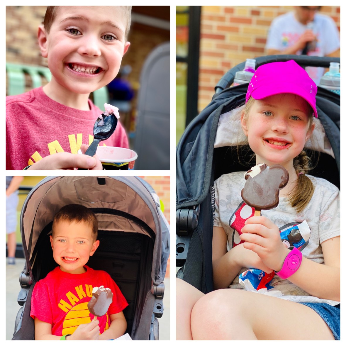 Daddy and Lexi headed over to Space Mountain while Mommy, Kate and William went on Winnie the Pooh–another favorite ride. After the ride was over, I knew we had pushed as far as we could with the two littles. They were tired and crabby. We grabbed some ice cream as we walked over to space mountain to wait for Daddy and Lexi. We did a quick rider switch and Lexi got to go on Space Mountain again with Mommy. Although the ride was pretty fun. I was fairly nervous for my Lexi. We were going pretty fast, couldn’t see anything and I was worried about her head bobbling around to much and getting some whip lash.