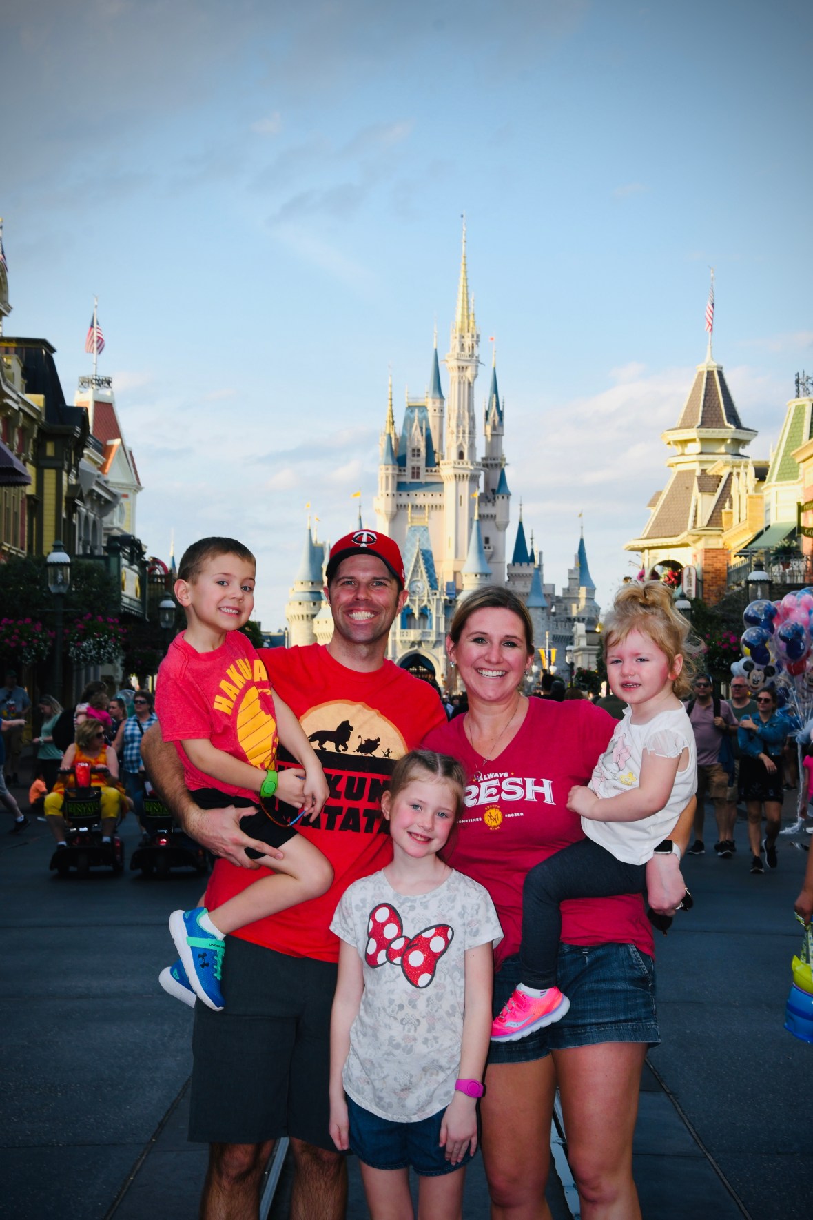 By 8:30, we were on a bus to Magic Kingdom to soak up our last few hours with Extra Magic hours.You kids were starting to get tired, so I gave you a few suckers to give you a little sugar kick and keep you awake.
