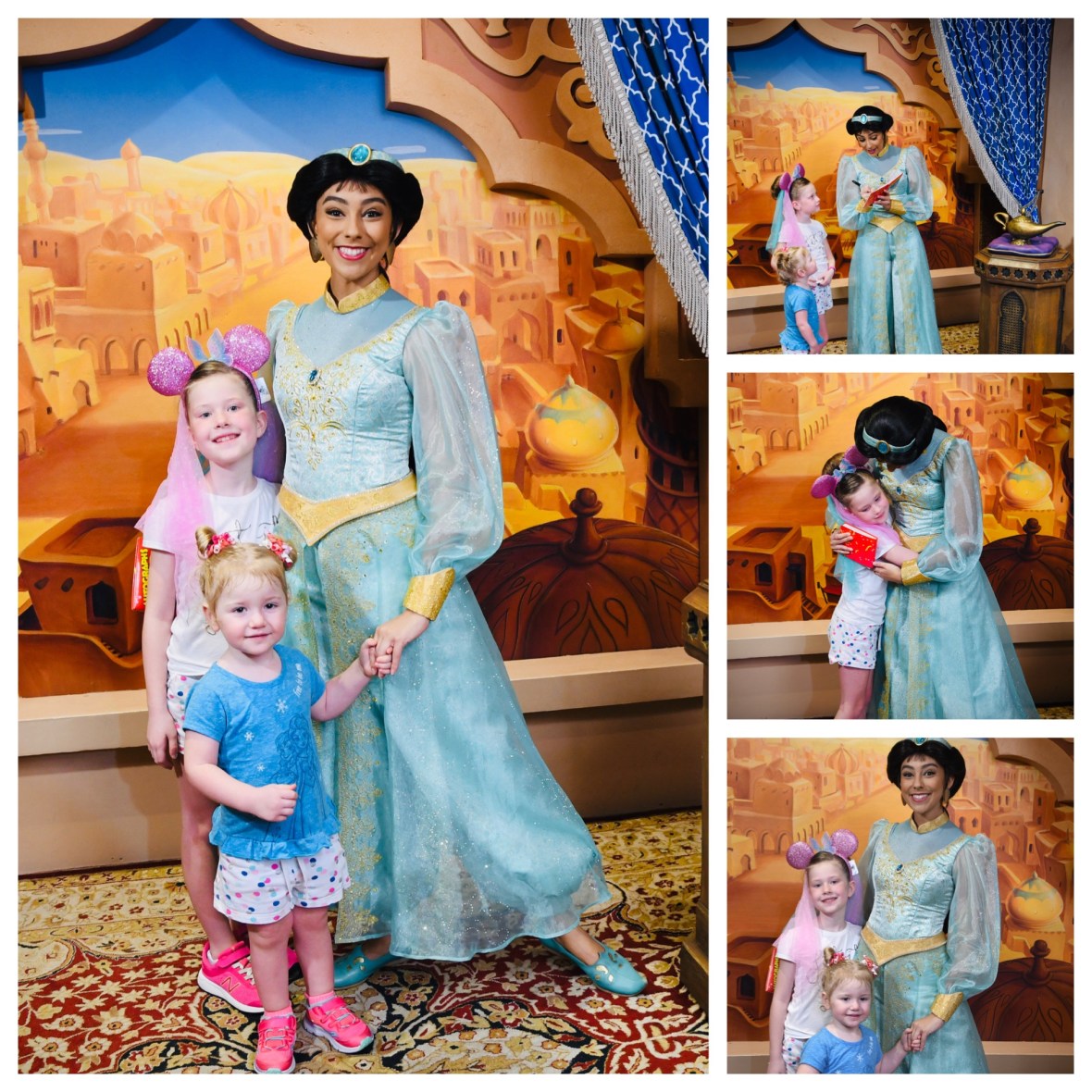 About half-way around, we stopped to meet Jasmine, which was a princess we hadn’t met before. Similar to meeting Daisy, these pictures are brought to you by a dum-dum sucker bribe for Kate.